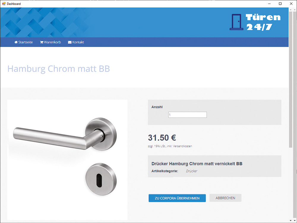 Ob für Platten und Beschläge oder Fenster, Innentüren und Parkett etc. – mit P247 Donau24 stehen alle Daten für Ihre Angebote und Kalkulationen permanent zur Verfügung. Die beinhalten nicht nur tagesaktuelle Preise, sondern auch Verfügbarkeit und Lieferzeit von sämtlichen Artikeln. Das erspart Ihnen Nachfragen beim Lieferanten. Und die Internetshops sind direkt in das ERP P123 Corpora eingebunden. So verwalten Sie alle Artikel von Angebot bis Rechnung und die Bestellung ist auch automatisiert.